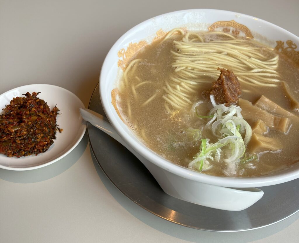 辛子高菜をトッピング。別皿でしっかり量もあるので白ご飯も食べたくなってしまった。